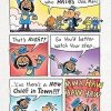 P.U.! Dog Man got sprayed by a skunk! After being dunked in tomato juice, the stink is gone but the scarlet red colour remains. Now exiled, this spunky superhero must struggle to save the citizens who shunned him! Will the ends justify the means for Petey, who’s reluctantly pulled back into a life of crime in order to help Dog Man? And who will step forward when an all-new, never-before-seen villain unleashes an army of A.I. robots?